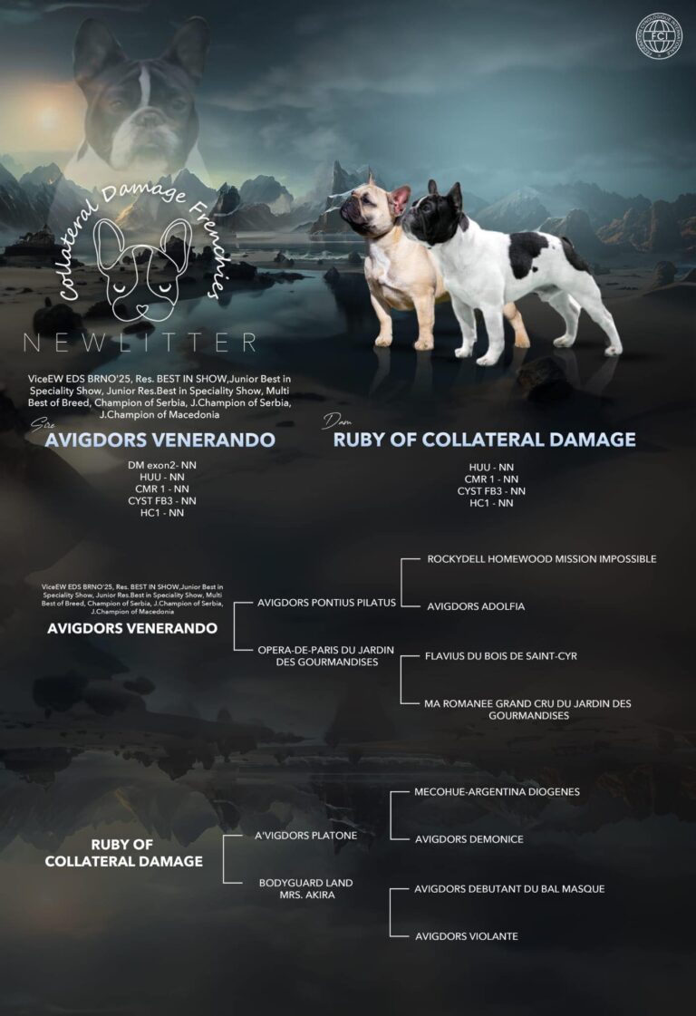 French Bulldogs came to kennel, at the same moment when Igor met the love of his life, his wife Veronica! As it goes, that biggest change in life of one man, can be brought by woman, that’s is how it happened! So Frienchies became a part of Collateral Damage! Right now, we live our life, surrounded with a bunch of lovely little fellows who gives us so much love, and more than that! Having a Frienchie is more like lifestyle, not just having pet! If you are interested in having Collateral Damage Frienchie, you can feel free to contact us anytime! We are here to answer on all your questions!